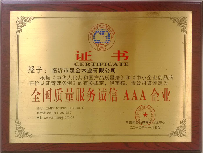 >> 全国质量服务诚信AAA企业